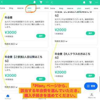 spacesアプリ内「plan」ページより「年会費」をご購入ください。