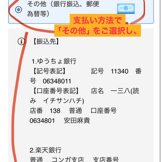 ※クレジットカードでのお支払い、または銀行振込をご希望の方は、下記の参考画像とテキストをご確認ください。